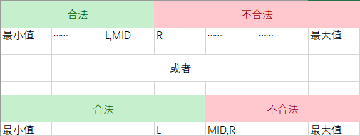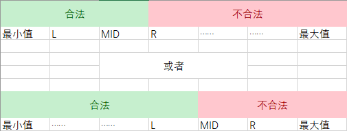 - 可行解对于区间满足一定的单调性。换言之,如果 x 是符合条件的,那么有 x + 1 或者 x - 1 也符合条件。(这样下来就满足了上面提到的单调性)