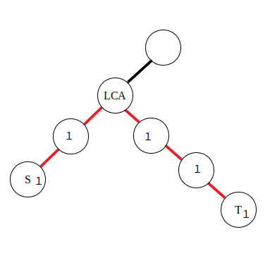 对于一次 \delta(s,t) 的访问,需要找到 s 与 t 的公共祖先,然后对这条路径上的点进行访问(点的权值加一),若采用 DFS 算法对每个点进行访问,由于有太多的路径需要访问,时间上承受不了。这里进行差分操作: