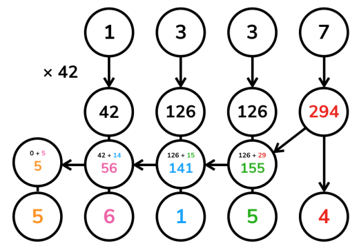 也就是从最低位开始,将两个加数对应位置上的数码相加,并判断是否达到或超过 10 。如果达到,那么处理进位:将更高一位的结果上增加 1 ,当前位的结果减少 10 。