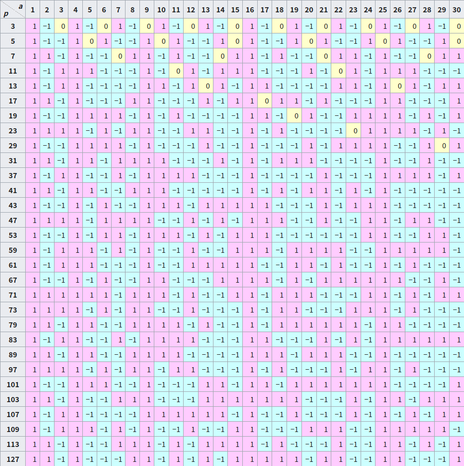 即得 Euler 判别准则,也可以推断出 Legendre 符号为完全积性函数。