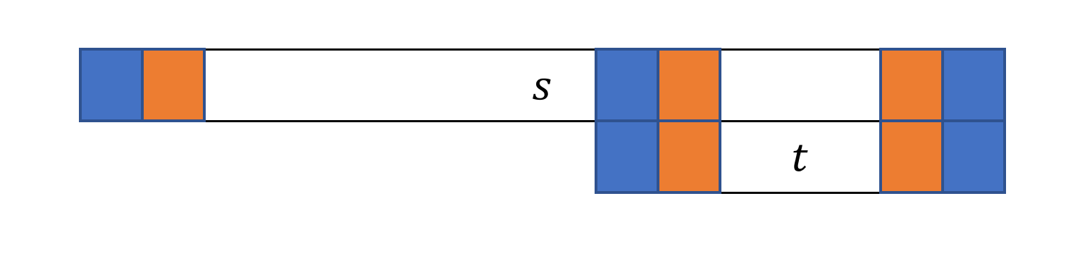 若 t 是回文串,由 t 是 s 的 border,因此 \forall 1 \le i \le |t|, s[i]=s[|s|-|t|+i]=s[|s|-i+1],因为 |s| \le 2|t|,所以 s 也是回文串。