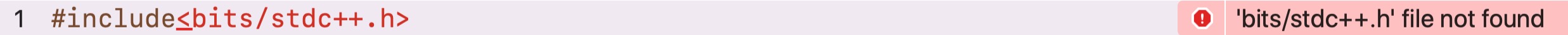 这是因为在 macOS 上默认使用 libc++ 作为 C++ 标准库实现,而万能头 bits/stdc++.hGNU libstdc++ 所独有的。